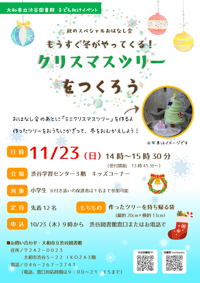 ★秋のスペシャルおはなし会 もうすぐ冬がやってくる!クリスマスツリーをつくろう